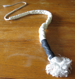 twine and tie a very tight & secure knot around the bottom of your whip right above your handle.